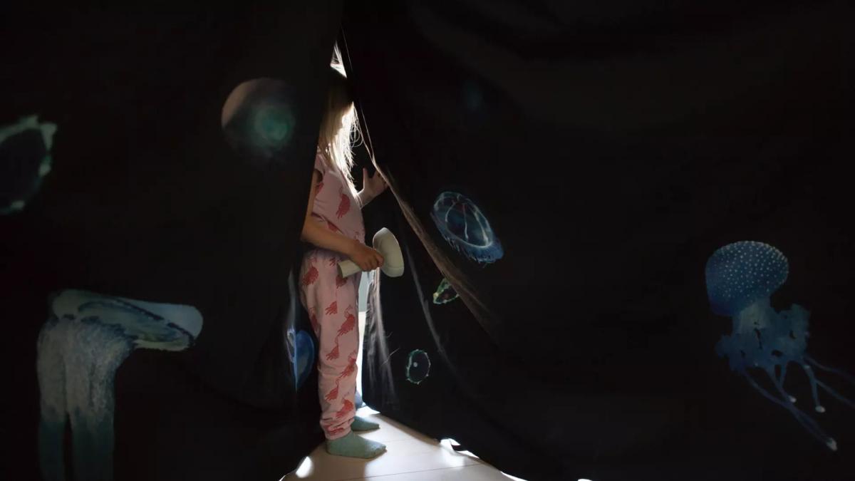 UNDRE er en magisk tekstil som lar barn forundre, forandre og fantasere. Med UNDRE kan du dra på telttur i din egen stue. Se opp på fascinerende nordlys eller dykke ned i de dype hav med selvlysende maneter og merkelige kreasjoner